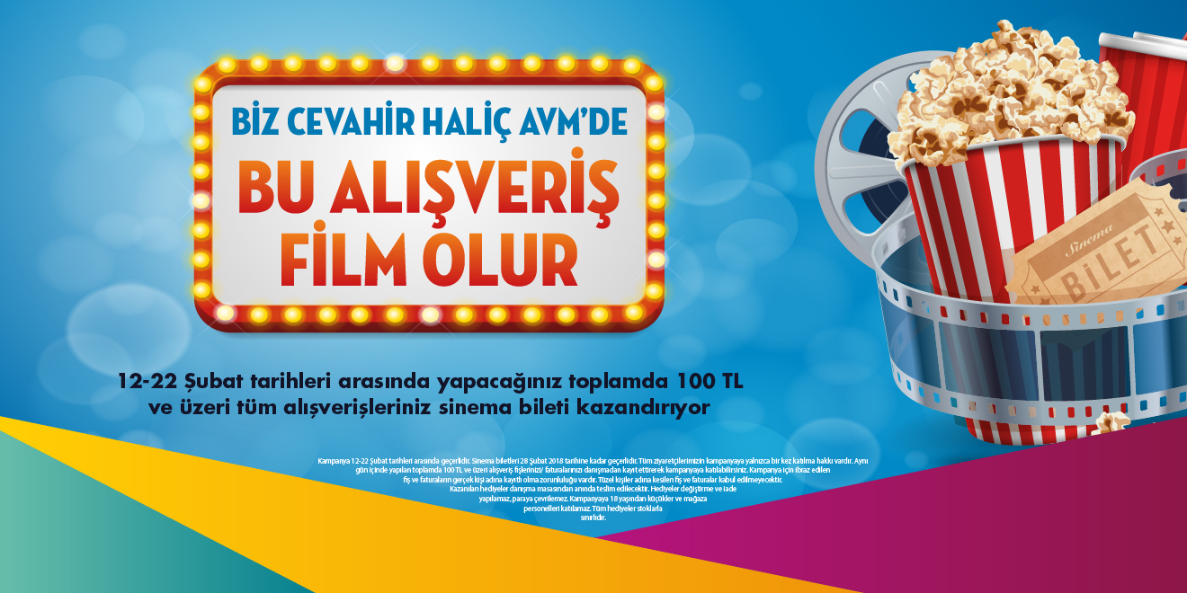 12 – 22 Şubat tarihleri arasında yapacağınız toplamda 100 TL ve üzeri tüm alışverişleriniz sinema bileti kazandırıyor.